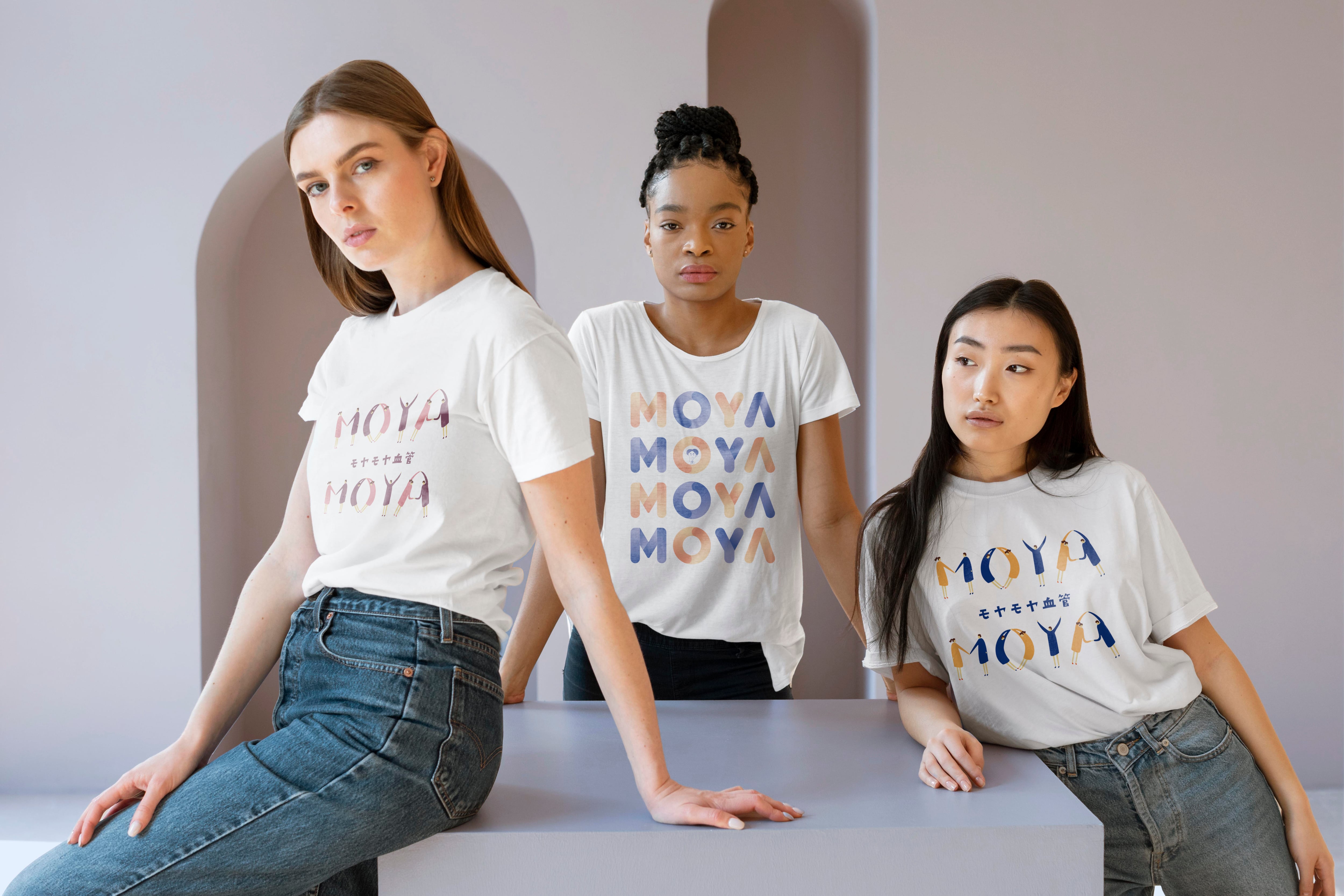 MOYAMOYAの文字をピンクにデザインしたTシャツです。